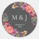 Burgundy & Plum Grey Elegant Tropical Monogram V2 Classic Round Sticker