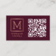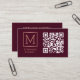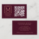 Burgundy QR Code Logo Monogram Rose Gold Business Card