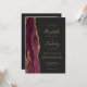 The left-hand edge of this elegant modern wedding invitation features a burgundy red watercolor agate border trimmed with faux gold glitter. The customisable text combines gold-coloured handwriting, copperplate and italic fonts on a dark charcoal grey background. Add your favourite photo to the reverse side, along with additional text and a QR code to send guests to your wedding website.