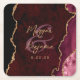 Burgundy Red Agate Gold Script Wedding Square Paper Coaster