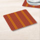 Burgundy red and burnt orange five stripe pattern. square paper coaster