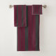 Burgundy red and charcoal five stripe pattern bath towel set