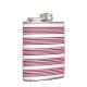 Burgundy red and white five stripe pattern hip flask