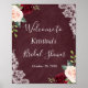 Burgundy Red Blush Floral Lace Bridal Shower Sign Poster.