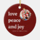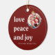 Burgundy Red Christmas Family Photo Love Peace Joy Ceramic Ornament