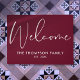 An elegant burgundy red doormat featuring beautiful script calligraphy welcome and personalised with your family name and special date. Designed by Thisisnotme©