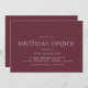 Minimalist style birthday dinner invitations in dark red. Personalise with your event details.