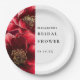 Burgundy Red Elegant Modern Floral Bridal Shower Paper Plate