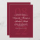 featuring bride and groom's name in white elegant script font style and details in white classic serif font style with large date in light burgundy red as background on burgundy red background.