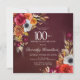 Burgundy Red Fall Flowers Script 100th Birthday Invitation