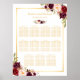 Burgundy Red Floral Gold Wedding Seating Chart Poster.