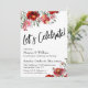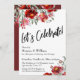 Burgundy Red Floral Let's Celebrate Typography Invitation