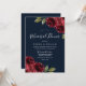 Navy Elegant Burgundy Red Flowers Rehearsal Dinner Invitation