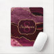 Burgundy Red & Gold Glitter Marble Agate Monogram Mouse Pad