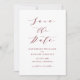 Announce your wedding date to family and friend with this customisable save the date card. It features minimalist script and simple typography with stripes pattern for the back. The colours on this save the date announcement are white and burgundy red, perfect for any wedding theme. Personalise by adding name, date, venue and other event details.