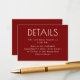 Burgundy Red Modern Minimalist Wedding Details Enclosure Card