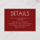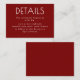 Perfect for modern, city, monochrome red, or red-tie weddings, this details card brings polished design and practical elegance together in one sleek little package.