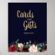 Watercolor Burgundy Red Navy Floral Rustic Boho Wedding Cards and Gifts Sign Poster with gold lettering. Perfect for a fall wedding. The design features a stunning bouquet of burgundy / Marsala , peach , navy flowers / roses with matching leaves. Please find more matching designs and variations in my "blissweddingpaperie" store. And feel free to contact me for any custom requests.