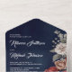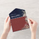 Burgundy Red Rose Floral QR Code Navy Blue Wedding All In One Invitation
