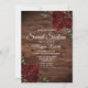 Burgundy Red Rose Rustic Wood Sweet 16 Invite