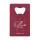 This design features personalised groomsman's name in white modern handwriting script font style and monogram in light burgundy red modern sans serif font style as background, with wedding details in white modern sans serif font style, on burgundy red background.