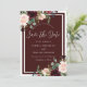 Burgundy Red Wine & Blush Flowers Wedding Save The Date