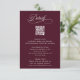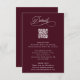 This burgundy and white wedding details enclosure card featuring elegant and romantic swirly calligraphy lettering with a QR code. Customise this card by adding information on your wedding including reception, accommodation, and website. Perfect for any season. For more advanced customisation of this design, please click the BLUE DESIGN TOOL BUTTON above!