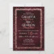The elegant, glamourous, and modern wedding invitation is perfect for the contemporary and stylish event. It features a faux printed pink rose gold sparkly glitter sprinkled confetti border on top of an artsy burgundy red watercolor background. The back displays the same glitter but sprinkled across the whole page with the watercolor background. This chic, luxury, and unique design will be a hit with all of your guests!