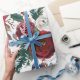 A striking floral watercolor Christmas pattern of beautiful hand painted burgundy roses, pine tree greenery, green and white leaves, and holly berries cover this lovely wrapping paper.