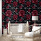 Pretty burgundy roses and foliage with a black background seamless floral pattern.