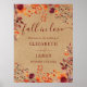 This modern, elegant rustic fall watercolor fall-in-love wedding welcome sign can be personalised with your information in stylish burgundy typography on a kraft paper background. Designed by Thisisnotme©