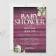 Burgundy Rustic Wood Greenery Floral Baby Shower Invitation