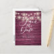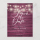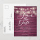 Burgundy Rustic Wood String Lights Save the Date Postcard