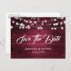 Burgundy Rustic Wood String Lights Wedding Announcement Postcard