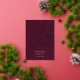 Elegant save the date card featuring hand lettered calligraphy text that says "save the date" in gold on a burgundy red background. You can add a photo on the back.