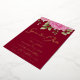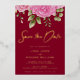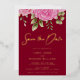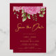 Burgundy background and gold, rose gold or silver foil lettering watercolor pink roses save the date wedding invitation template which is ready for you to customise. This elegant foil save the date wedding invitation features roses and text in a handwritten font. You can personalise this invitation with your own details and colours.