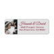 This simply chic return address label template features your photo along with your names in an elegant, classic script above your address on a light grey base. It works wonderfully with a variety of wedding themes and is also great for other special occasions! You can use two first names or any other format that suits your needs. You can also change the background colour and the style, colour and size of the text. The default text colour is an elegant shade of burgundy. Create your own custom look with the intuitive design tools your favourite photo and your inspiration. And please check our store for a selection of distinctive return address labels!