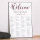 Alphabetical wedding seating plan in burgundy red.