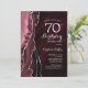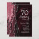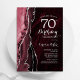 Burgundy and silver agate 70th birthday party invitation. Elegant modern design featuring dark red marsala wine watercolor agate marble geode background, faux glitter silver and typography script font. Trendy invite card perfect for a stylish women's bday celebration. Printed Zazzle invitations or instant download digital printable template.