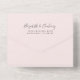The left-hand edge of this elegant modern all-in-one wedding invitation and RSVP features a burgundy watercolor agate border trimmed with faux silver glitter. The customizable text combines charcoal gray handwriting script with copperplate and italic fonts on a blush pink background. The return address appears on the outside flap and the reverse side of the detachable RSVP card.
