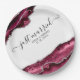 Burgundy & Silver Agate Borders Just Married Paper Plate
