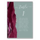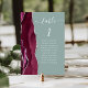 The left-hand edge of this elegant modern wedding table number card features a burgundy red watercolor agate border trimmed with faux silver glitter. The word "table" appears in white handwriting script on a sage green background. Add the names of your guests who are assigned to each table.