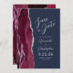 Burgundy Silver Agate Script Navy Save the Date Announcement