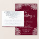 Elegant Real Silver Foil Wedding Invitation with a burgundy background inside and an intricate faux silver Mandala flower design representing the blossoming of Purity within our Soul. The colour Burgundy increases energy in a thoughtful, dignified and controlled way. Encourages feelings of warmth and comfort. Perfect for a beautiful Autumn and Winter reserved ceremony. You can change the text from the Personalise menu. Contact me for any help. Original Design by SunFreeStar.