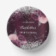 Burgundy silver florals birthday paper plate