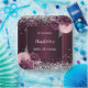 Burgundy background decorated with burgundy and blush pink florals, flowers, and faux silver glitter, sparkles. Personalise and your name and the date.