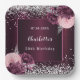Burgundy silver florals birthday paper plate