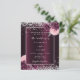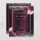 A deep burgundy background decorated with burgundy and pink florals, flowers and faux silver glitter, sparkles. Personalise and add your names and wedding details. Black letters.