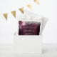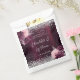 Burgundy background decorated with burgundy and blush pink florals, flowers, and faux silver confetti. Personalise and your names and the wedding date.