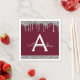 Burgundy Silver Glitter Black Monogram Birthday Napkin